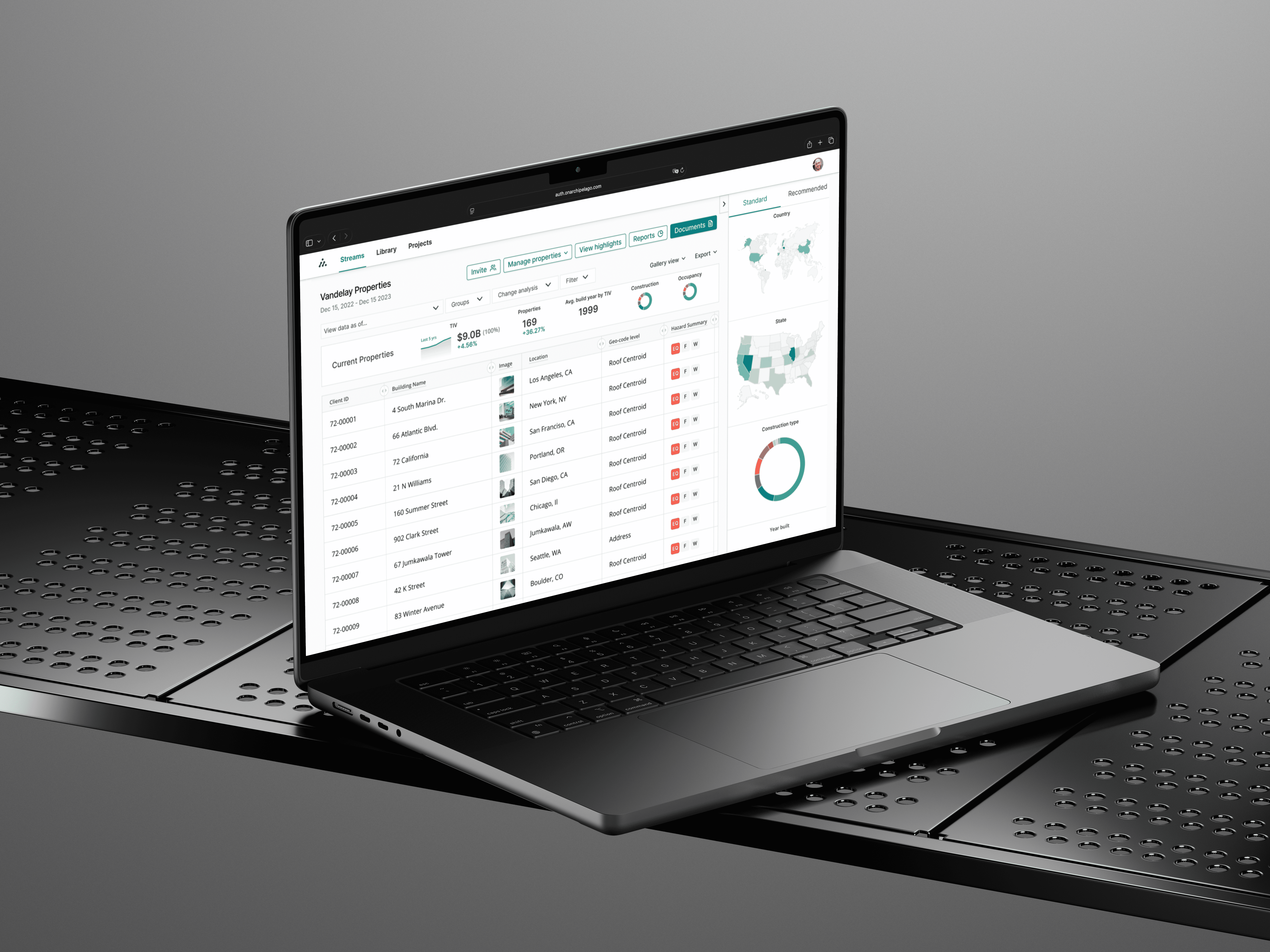 Archipelago's property risk insurance platform is used by enterprise clients like Amazon and Meta. The platform is highly data-intensive, designed to help users manage vast portfolios of insurance documents and property details.